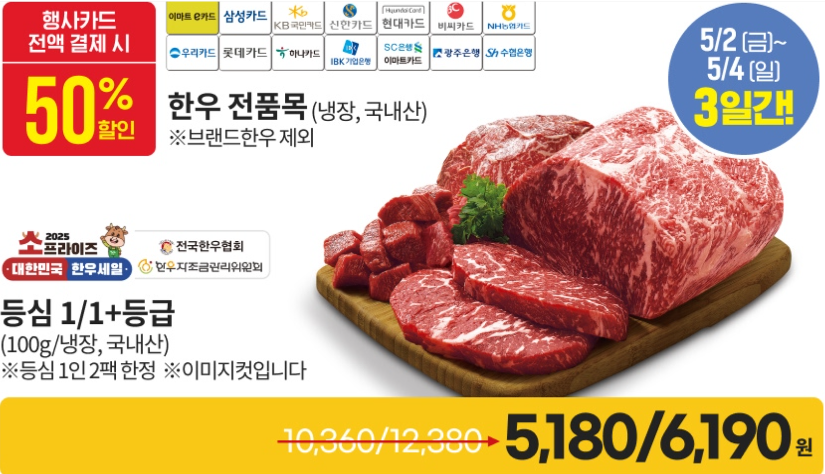 2. 한우 전품목 반값세일 (행사카드 전액 결제 시)